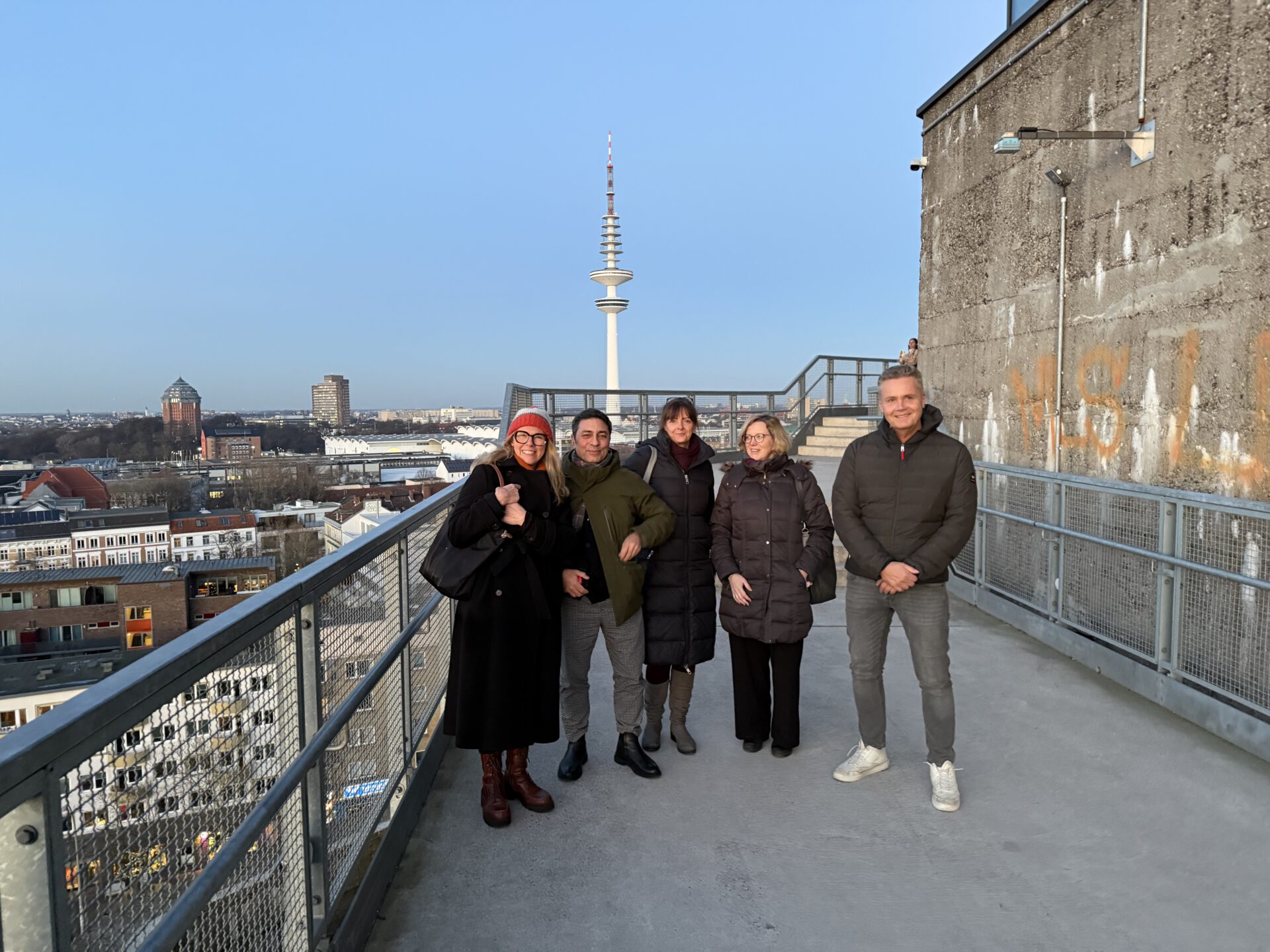 Hohoho – hoch hinauf ging es dieses Jahr auf unserer Weihnachtsfeier 2025. Nachdem wir uns in der Trattoria Brunello mittags gestärkt haben, sind wir den Bergpfad um den Grünen Bunker auf dem Heiligengeistfeld hochgewandert, um auf einer Höhe von 58 m den 360° Panaromablick über die Stadt zu genießen. Vor dem Abstieg gab es zum Aufwärmen Kaffee + Kuchen im stylischen Café Constant Grind mit einem der schönsten Ausblicke der Stadt. Weihnachtlich wurde es dann für uns anschließend auf Weihnachtsmarkt Santa Pauli. Nach dem einen oder anderen Glühwein waren wir anschließend in der richtigen Stimmung für echte Kiez-Kultur und eine atemberaubende Comedy-Show mit Elke Winter im Schmidt Theater.